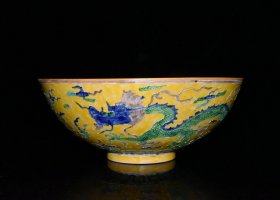 瓷器 明代成化珐华彩红胎龙凤纹薄胎碗【11.9x29.3cm】