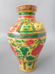 元代珐华彩花卉纹兽首贯耳赏瓶