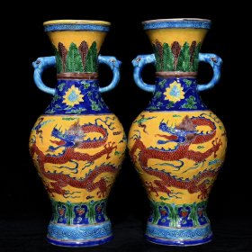 旧藏明永乐珐华彩龙纹象耳瓶