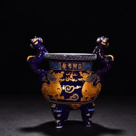 瓷器 明永乐珐华彩描金瑞兽兽耳三足炉 高21.5厘米 宽22厘米