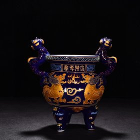 明永乐珐华彩描金瑞兽兽耳三足炉