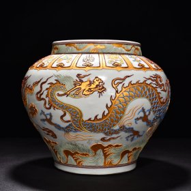 瓷器 元珐华彩沥粉描金云龙纹罐 高30厘米 宽35厘米