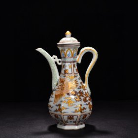瓷器 明永乐珐华彩描金凤纹八方执壶 高32厘米 宽21厘米