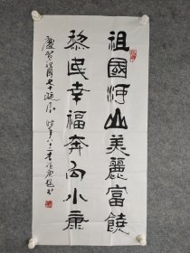 保真销售【闫老】中国国画艺术研究院创作室主任 中国国家画院詹庚西工作室画家 中国美术家协会培训中心画家四川博正鉴源美术馆馆长隶书书法(醉翁之意)一幅,软件未裱,画心尺寸:134*22厘米Y140-09