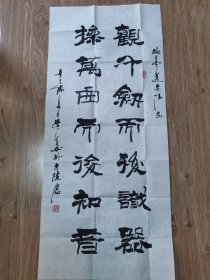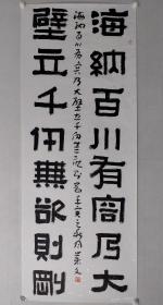 保真书画,覃业文书法隶书一幅,尺寸:180×70cm软片,覃业文,陕西书协隶书专业委员会副主任,第三届中国书法兰亭奖“艺术奖”获得者,全国第二届篆书展一等奖获得者,全国第二届隶书展一等奖获得者。