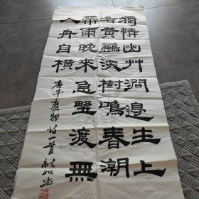 雷鸣东,国学大师,尺寸138×70厘米,中国书画艺术研究会会长、中国名人书画研究院院长、中国书法艺术研究院副院长兼中国画委员会主任、中国书法家隶书研究会副会长、该作品保真手绘,品相和图片一致