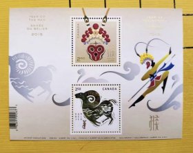 美洲邮票 加拿大邮政 生肖猴邮票 生肖羊 2015年发行 猴年邮票 小全张 小型张 羊猴交替 小型张 喜欢外国邮票的朋友不要错过哦,欢迎来我店铺做客聊天,不定期更新中记得关注我
