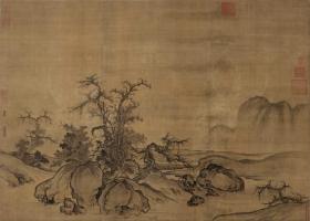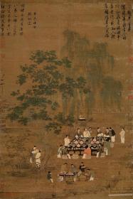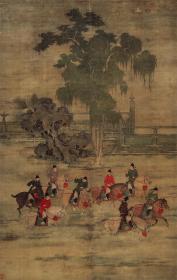 宋徽宗赵佶听琴图防水绢布原色原寸复制,仿宣和裱卷轴,整体尺寸约61x225厘米,画心部分约51x145厘米,非边疆地区包邮(送字画收纳袋一个)!