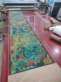 唐卡财宝天王图装裱卷轴 画心根据古代原作高清复制,绢布印制,采用高档装裱材料及优质装裱工艺,内外双镶边使得视觉效果更佳,整体尺寸每条约60×195cm,装饰文房,赠送师友,优质礼品,价格268元包邮,