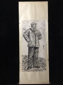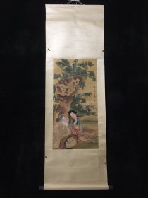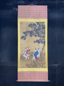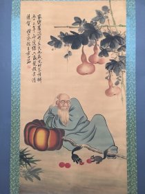 编号F93。画家:齐白石 人物画 材质:绢布。 装裱尺寸:183×79cm 画芯尺寸:105×60cm 备注:因手机和光线问题图片之间会有色差。