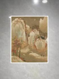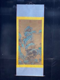 19_名人绢布山水画【尺寸176x60厘米】 戴文进,明画手以戴进为第一。进,字文进,钱唐[1]人也。戴进(公元1388—1462),字文进,号静庵,又号玉泉山人,浙江杭州人