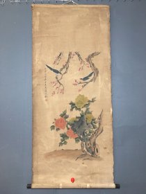 编号:C0181 画家:沈铨 花鸟画 手绘画 画工精细 材质:绢布 包浆老道 实物拍摄,一物一图 装裱尺寸:155×74cm 画芯尺寸:85×46cm 备注:因手机和光线问题图片之间有色差