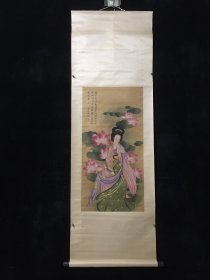 编号EB:51 精品三尺中堂绢布画,荷仙子, 纯手工画,实物拍摄一物一图 装裱尺寸高×宽:184cm×59cm 画芯尺寸长×宽:90cm×42cm