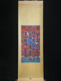 代号T65《李世民书法》三尺绢本带龙纹手绘皇帝书法 批发价:1880元 材质:绢布 装裱尺寸:184cm*59cm左右 画心尺寸:80cm*45cm左右 实物拍图