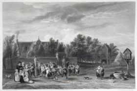 1855年 钢版画 雕刻凹版《乡村节日,THE VILLAGE FETE》