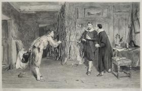 1888年 钢版画 雕刻凹版 《决斗中断,THE DUEL INTERRUPTED》