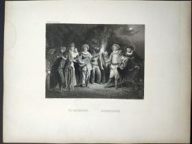 1851年钢版画 雕刻凹版《狂欢舞会,A FETE CHAMPETRE》