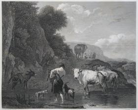 1869年 钢版画 雕刻凹版《高原放牧,IN THE HIGHLANDS》