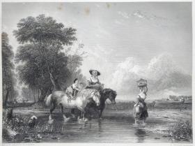 1858年 钢版画 雕刻凹版《穿过浅滩,CROSSING THE FORD》