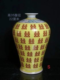 黄釉红双喜梅瓶