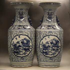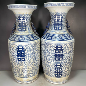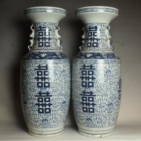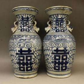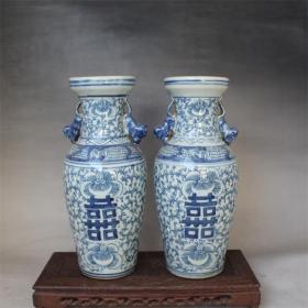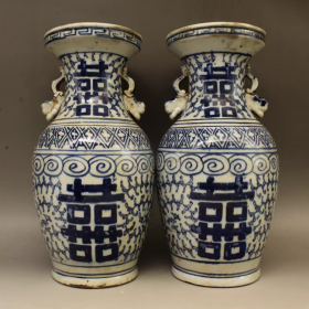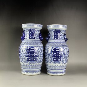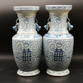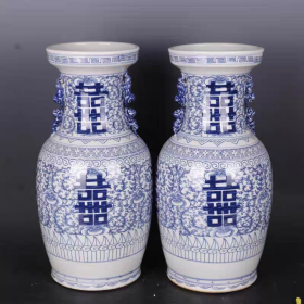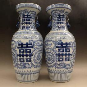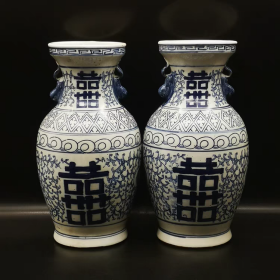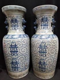 青花双喜瓶(一对)