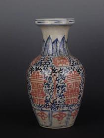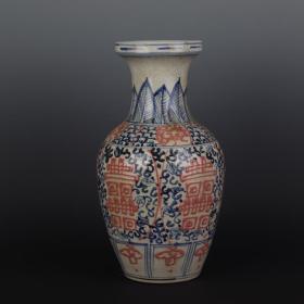 青花釉里红手绘双喜瓶