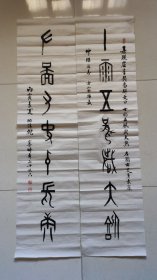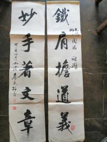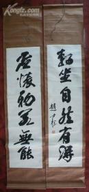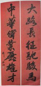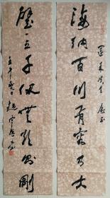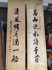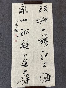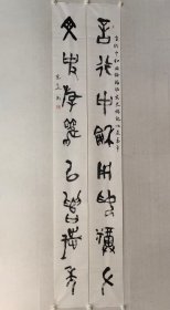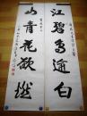 保真书画,葛介屏书法对联一幅,尺寸:128*26*2。葛介屏,男,汉族,1912年出生,安徽合肥人。 邓派碑学的直接继承者,曾任中国书法家协会理事,安徽省书法家协会副主席,安徽省金石学会会长。
