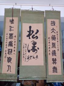 【潘天寿弟子,书画名家张恳先生】四尺整张中堂一套,新裱立轴,对联上方为张恳先生所绘寿带鸟和寿桃,奇货可居,品相如图! 聚珍轩画廊保真销售,请放心选购!薄利销售,议价勿扰!看中请直接下单,谢谢!