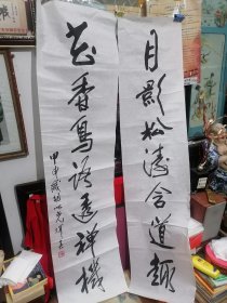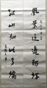 著名书画家,上海交大海派文化研究所副所长,交大教授詹仁左(丙戌年)精品对联,(纸本软片,尺寸:100*34cm,约6平尺,钤印:詹仁左,长乐)[卖家保真]