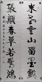 著名书画鉴定家、书法家、曾任广东省文物鉴定组组长 苏庚春 书法对联作品《米老云山留墨戏,张颠春草若惊鸿》一幅(纸本软片,约4.3平尺*2,钤印:苏庚春、古稀之后作)HXTX284898