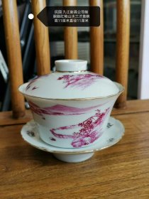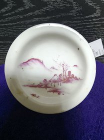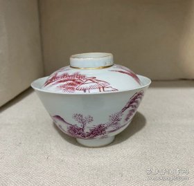 民国胭脂红山水盖碗。器型规整大方,古朴稳重,釉质肥厚温润,画工细腻,质感相当好。碗有冲线,盖子近全品,