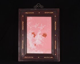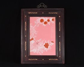 价格2100元. 民国竹溪道人王步绘胭脂红釉堆雪工艺花鸟秋色清华瓷板画. 高52宽40厘米1.