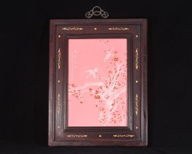 价格2100元. 民国竹溪道人王步绘胭脂红釉堆雪工艺花鸟春之声瓷板画. 高52宽40厘米1.
