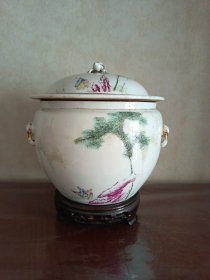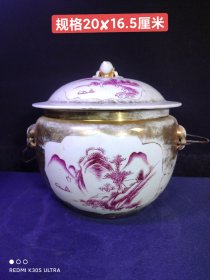 民国手绘胭脂红盖缸