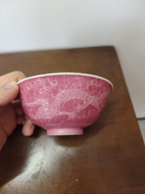 民国胭脂红压道龙纹碗