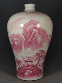 民国珠山八友汪野亭胭脂红山水风景大梅瓶