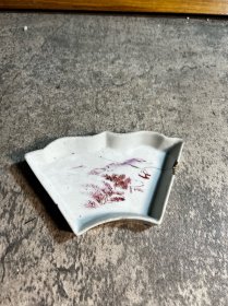 民国手绘胭脂红碟子,残