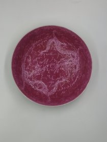 民国 胭脂红轧道双龙纹盘