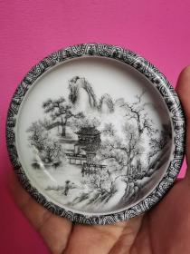 民国汪小亭胭脂红山水纹盘4.4/22.3 857008696