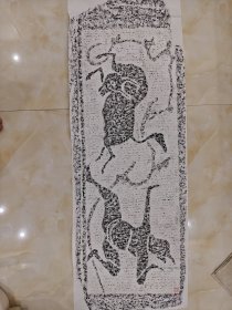 汉画像石刻艺术 南阳汉画馆 《搏虎斗牛》画像 手拓 拓片一张 带南阳汉画馆 钤印 尺寸150*32厘米『坐拥百城YXY20230831A190』