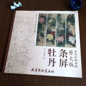 牡丹条屏 原大版 实用白描画稿 工笔画白描底稿图谱画谱花卉花鸟