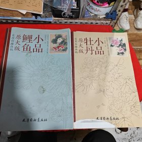 实用白描画稿(原大版):牡丹小品,鲤鱼小品,富贵牡丹,牡丹团扇,六部学工笔画2本(6本合售)
