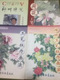 中国画技法:传统工笔牡丹画法、荷花工笔画法、工笔牡丹画法,神州博览(王志远绘画作品鉴赏)共4本合售