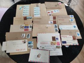 信封、封片简、实寄封、邮资封:信封上的邮票有1989年的J157、J159、J164、J165、T135、T136、T137、T139、T144、1992-17(2-2)J、1994-9(4-3)J、1994-10(2-1)T、1996-26(6-3)T、1998-14(2-1)T、1999-2(6-4)T、2007-1(1-1)T 实寄封 有邮戳 其中1封有信笺 20封合售 文件夹026
