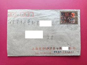 中国封片国内平邮实寄封19900217上海寄南京贴T135-1马王堆汉墓帛画