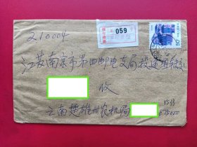 中国封片国内挂号实寄封19910115楚雄贴T135-1马王堆双联普票多枚