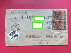 中国封片国内实寄封19910309湖南湘潭T135-1马王堆双联+普23民居