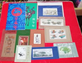 邮票11种( T135 马王堆汉墓帛画 小型张)(小型张 T.151秦始皇陵铜马车)(J162 孔子诞生二千五百四十周年 小型张)(T144 杭州西湖 小型张)(1993-7 T 毛竹 小型张)(T106 熊猫 小型张)( T121中国历代名楼小型张)(邮票 毛泽东同志诞辰一百周年 )+(八仙过海 各显其能 四连 票 山东省集邮公司)( T159辛未年(羊年)邮折 。 T146庚午年 邮折