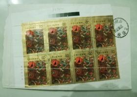 邮票 1989年 T135 马王堆汉墓帛画 3-1 8分四方联.1993-6邮票共5枚贴在信封上