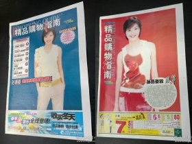 大张8开2页正反双面多图!新加坡女歌星孙燕姿(2001.3.6/2001.7.27精品购物指南封面及独家专访报道)老明星绝版罕见照期刊杂志正文内切页彩页报纸写真照海报
